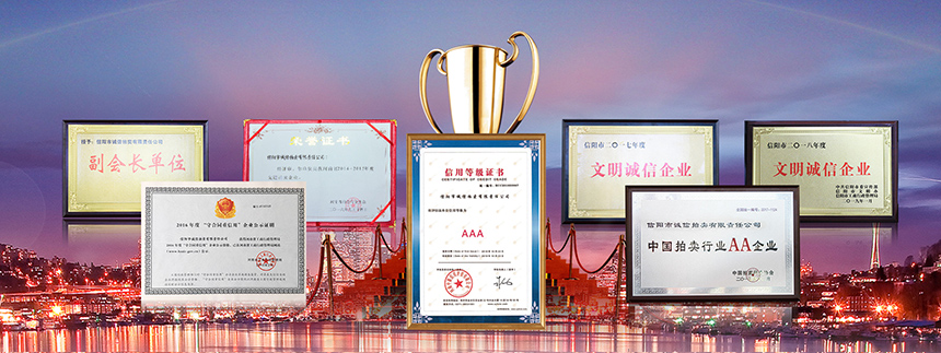 誠信拍賣公司先后被授予“中國拍賣行業AA級企業”、“河南省拍賣行業優秀企業”、“守合同重信用企業”、“信陽市文明誠信企業”等多項殊榮。公司自有辦公場地2800平方米,是目前信陽市拍賣行業實體規模大、美譽度高的企業。>>查看更多>>